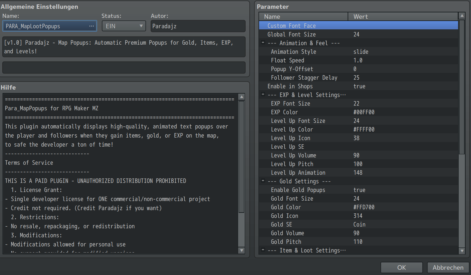 With Para_MapPopups The plugin "listens" to the engine. The second you use the "Change Gold" or "Change Items" command in an event, the plugin automatically triggers a popup with the correct icon, the correct name, and your preset sound effects. No more manual typing.